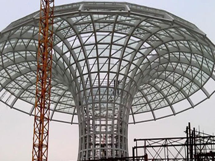 二、球形网架结构因其结构新颖,受力合理,自重轻、用钢量低等优点。如大型体育场馆球形天津螺栓球网架、公共场馆球形网架、电厂天津螺栓球网架、水泥工业球形网架、仓储物流球形网架、天津干煤棚工业球形网架、天津收费站天津加油站球形网架、展览中心、影剧院、商场、航站楼、候车厅、工厂天津车间、仓库、电视塔等球形螺栓球节点网架。国内球形网架结构主要分为:天津焊接球节点网架及螺栓球节点网架两种。螺栓球节点网架其构件工厂内加工量较大,现场安装便捷,适用于现场工期紧,天津施工条件、用电量受制约,网架形状复杂、天津杆件定位困难的异形结构。螺栓球节点球形网架系统基本由天津杆件、螺栓球、支撑支座等组成。按照节点形式可分为交叉天津桁架体系、四角锥体系、三角锥体系等。支撑方式多为固定支座支撑。对于大面积、大跨度及有特殊受力或伸缩要求的网架结构可采用橡胶支座、滑移支座、球铰支座等支撑形式,以满足结构自身的受力稳定、均衡,便于内力释放等设计要求。